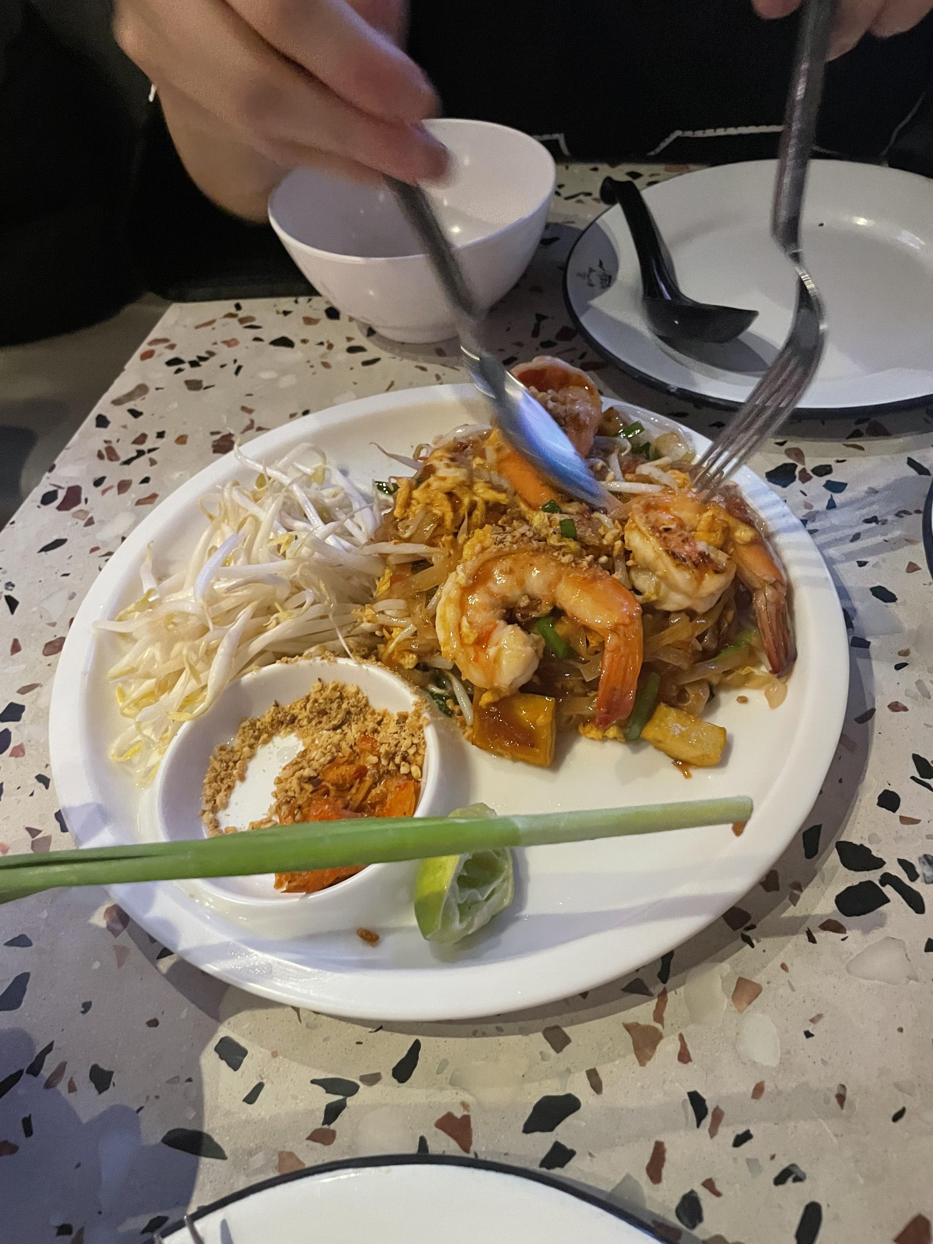 이전에 서술했듯이 우리 숙소는 나나/아속역의 중간에 위치해있다. 번화가이니 밥먹을데가 많겠지 싶어 해가 지고는 나나역으로 향했다. 나나역은 유흥의 성지라고 한다. 나는 사실 나나역이 왜 번화가인지는 모르고 숙소를 예약했던 터라 나나역에 도착해서야 분위기를 파악했다. 거리에는 더운 날씨에도 짙은 화장을 한 여성들이 혼자 뜨문 뜨문 서있었다. 거리에서 트월킹을 하는 여인도 있었다. 근데 엄청 불건전한 그런 느낌보다 이태원의 저녁 분위기같은 느낌이었다. 길거리에서 조각피자도 사먹고, 엄청 핫플처럼 보이는 큰 식당에 들어가서 팟타이와 똠양꿍을 먹었다. 그