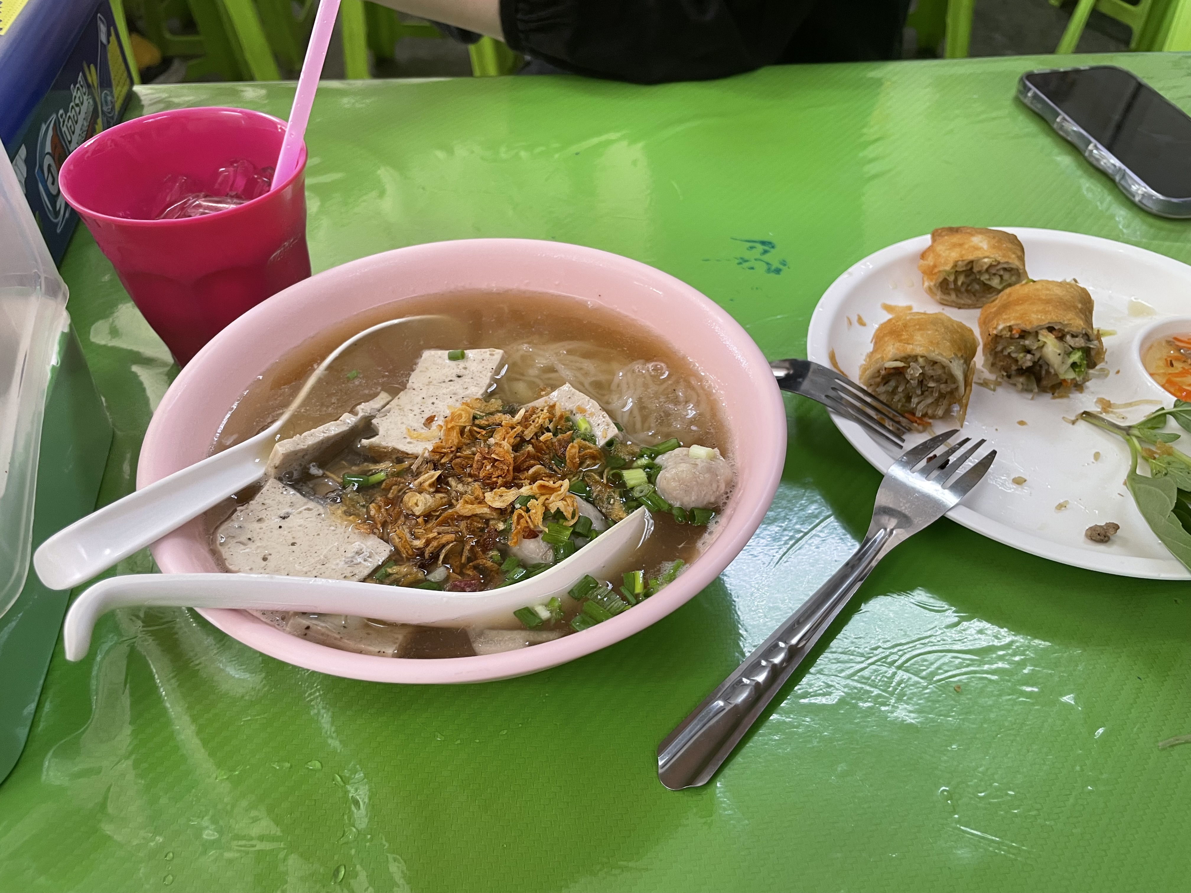 끈적국수집에는 한국 사람들이 많이와서 드라마도 찍고 그랬던 것 같다. 끈적국수는 정말 끈적하진 않고 그냥 전분을 풀어 되직한 국물의 국수였다. 아마 태국 전통식은 아니고 베트남식인듯 하다. 벽에 베트남 국수라고 써있다. 맛은 정말 후추를 뿌린 감자면이랑 90% 이상 일치한다. 대기업의 식품 개발 연구원들은 해외를 다니면서 이런맛 저런맛 많이 느껴보다가 제품으로 내는걸까? 싶을 정도로 정말 맛이 비슷했다. 스프링롤 한 접시에 국수 한 그릇 먹고 나와서 더운데 어디서 좀 쉴까 싶었다. 아까 버스에서 내릴 때 바로 앞에 있던 카페가 기억이 나서 그 카페로 들어갔다.
