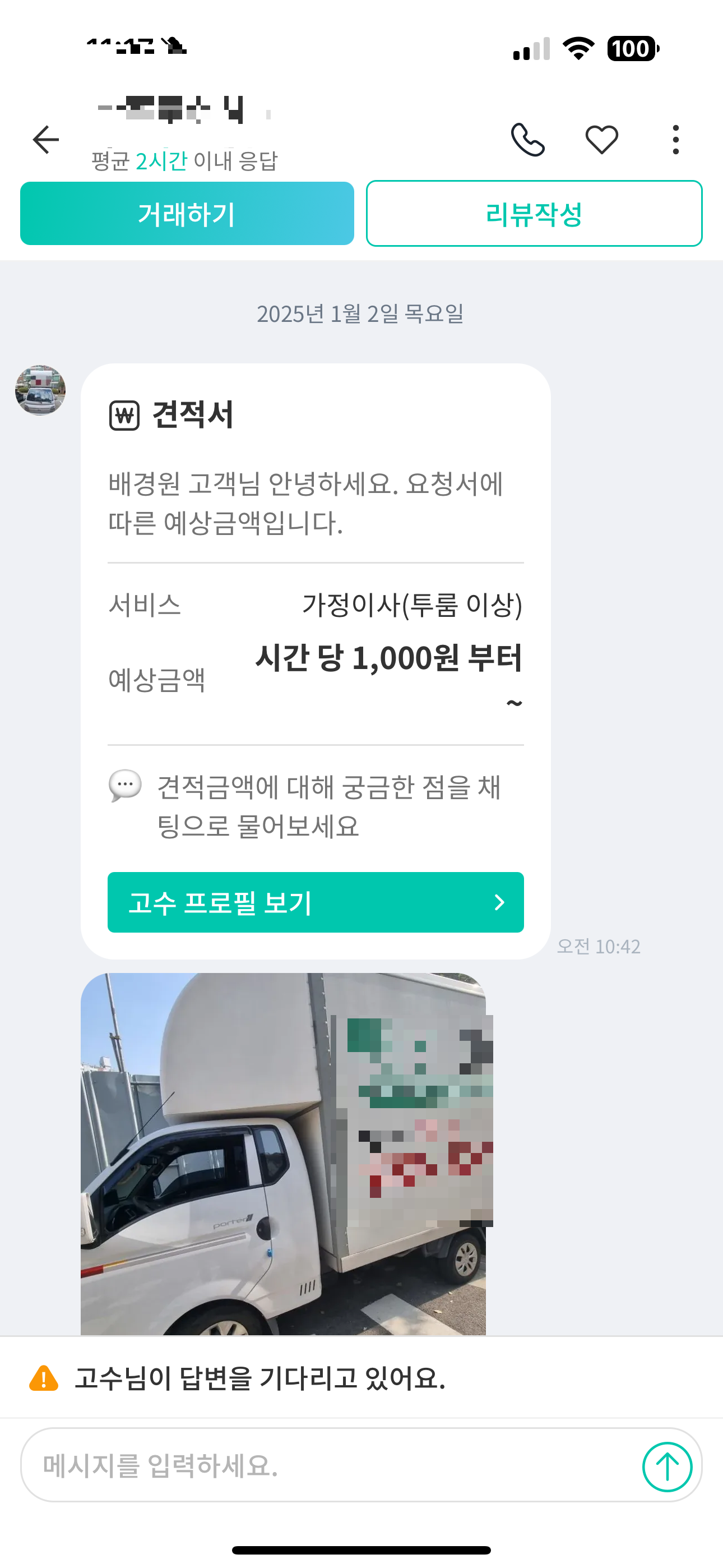 너무 바빠서 숨고 한 곳만 보고 진행했고, 아정당 이사 견적도 내봤으면 좋을 것 같은데, 그거 신청할 기력도 없었습니다 😇😇